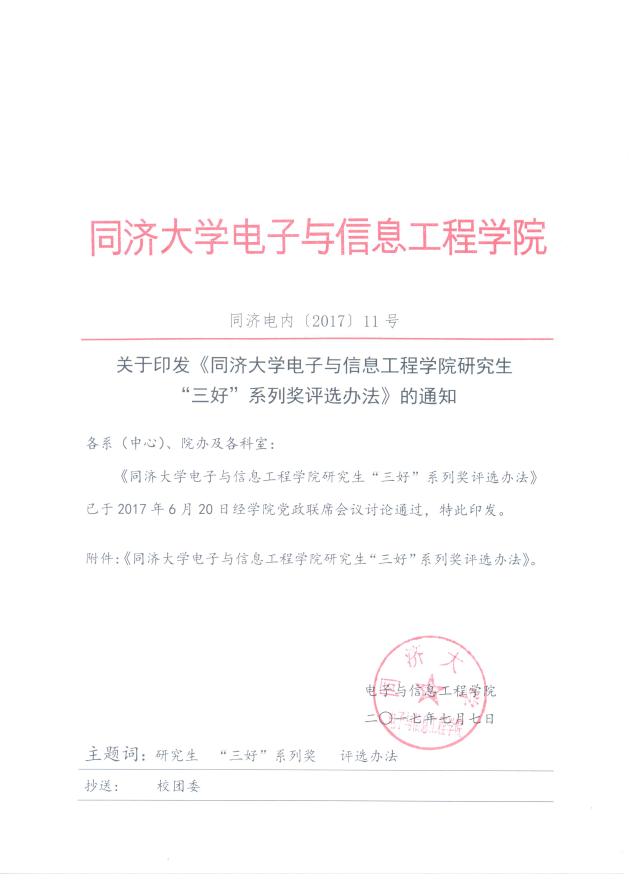 关于印发《同济大学电子与信息工程学院研究生"三好"系列奖评选办法》的通知