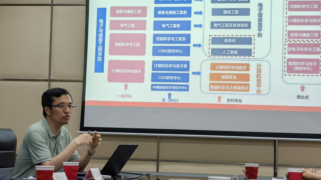学院副院长周俊鹤对我院专业建设及人才培养工作进行介绍。对学院历史沿革进行了回顾,重点介绍了目前学院架构、专业情况及优势,从基础教学、产学育人、学生科创等层面介绍了我院多样化的顶尖人才培养模式和多元化的学术交流平台。副院长黄新林对我院科研及学科建设工作进行了介绍。对学院学科发展、人才引进与培育的情况进行回顾,重点介绍了近五年学院深化科教融合和产教融合、推动全员全过程全方位育人的亮点工作成果。