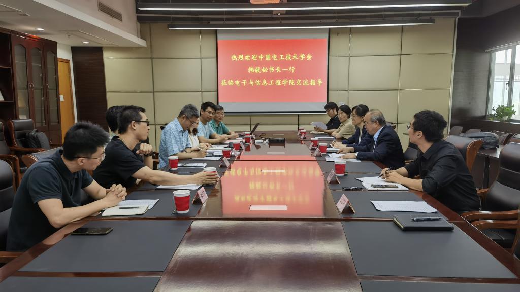 6月3日下午,中国电工技术学会秘书长韩毅、学术部主任孙于来我院进行交流指导,进一步深化学校学会间合作与交流,充分发挥双方优势资源,共同推进校会合作走深走实,服务科技创新与人才培养。学院党委书记王峻接待韩毅秘书长一行,党委副书记朱琴跃,副院长周俊鹤、黄新林,电气系主任沈小军、信通系主任王超以及系负责老师参加交流活动。