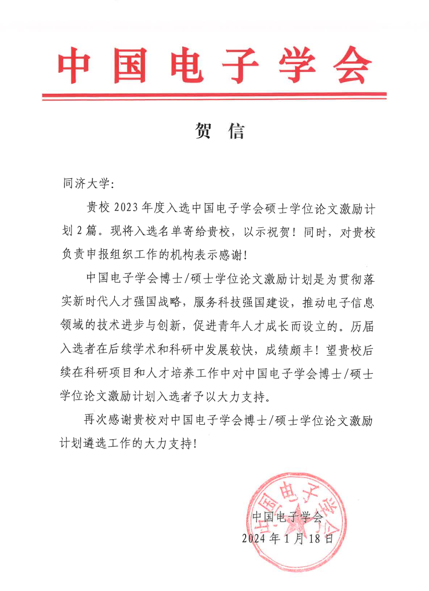 中国电子学会博士/硕士学位论文激励计划是为贯彻落实新时代人才强国战略,服务科技强国建设,推动电子信息领域的技术进步与创新,促进青年人才成长而设立的。本次入选者涂远鹏分别于2020年、2023年获得同济大学工学学士与计算机科学与技术硕士学位。硕士期间主要研究方向为行人再识别与噪声标签学习,在CVPR、AAAI、TIP等学术会议及期刊上共发表一作论文4篇,获得国家奖学金1次及优秀学生奖学金1次。现于香港大学攻读博士学位。