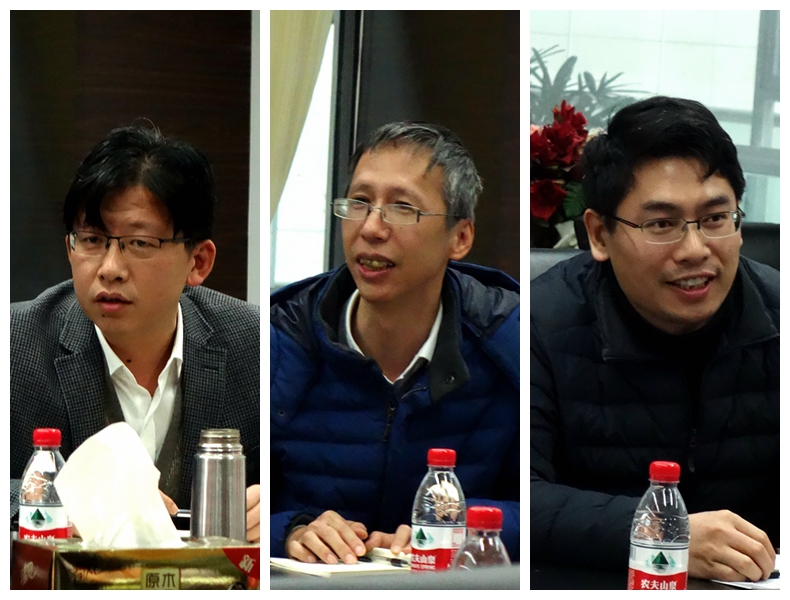 与会退休教师发言(从左至右依次为:龚沛曾、朱劲、雷春奇、贾建华、许兰兰老师)