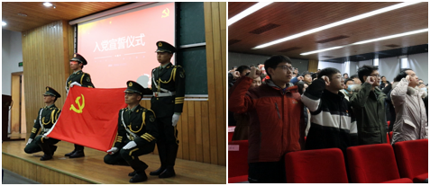 学院入党积极分子现场观摩了宣誓仪式,学院其他党员和发展对象线上参与活动。(孔佳莹)