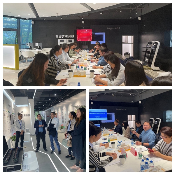 学院教工第一支部一行十人在上海自主智能无人系统科学中心建设领导小组办公室主任、科学中心执行主任、同济大学机关教工第三十一党支部支部书记何斌、组织委员兼宣传委员刘蒙、人事主管王岩的带领下,参观了上海自主智能无人系统科学中心展厅和研发平台,观摩了多智能体高速动作捕捉系统、多智能体全域感知发育场、数字孪生一屏集控系统和人工智能餐饮原型实验室。