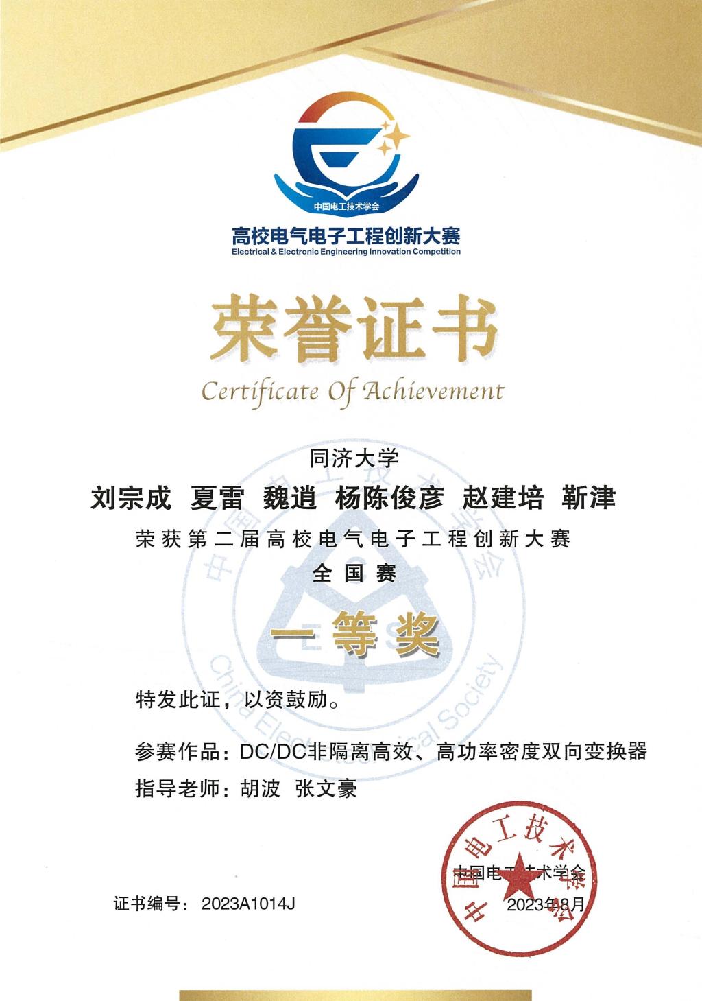 8月18日至20日,由中国电工技术学会主办,北京交通大学承办的第二届高校电气电子工程创新大赛决赛在北京交通大学举行。来自全国各地的54支参赛团队经过激烈的角逐,展示了他们的创新成果和实践能力。我院参赛队伍由刘宗成、夏雷、魏逍、杨陈俊彦、赵建培、靳津六位同学组成,在胡波和张文豪两位老师指导下,设计了DC/DC非隔离高效、高功率密度双向变换器,获得了决赛的一等奖。